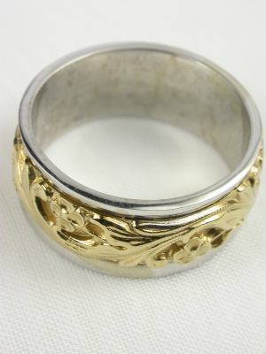 Vintage Two Tone Art Carved Wedding Band In 14kt Gold The Crown