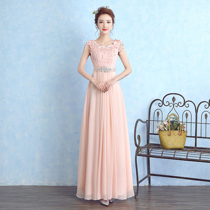 Cheap Elegant Lace Applique Bridesmaid Dresses 2019 Baby Pink