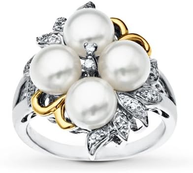 Amazon Com Jared Cultured Pearl Ring Diamond Accents Sterling