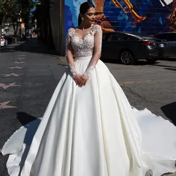 2020 Arabic Ball Gown Wedding Dresses Deep V Neck Lace Appliqued