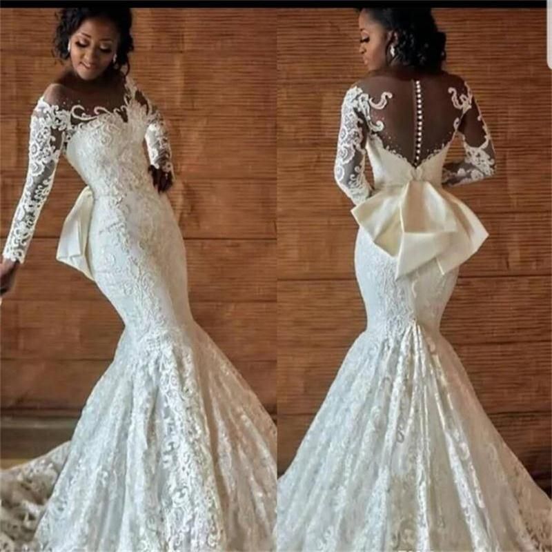 Ne183 African Bridal Gowns White Lace Mermaid Wedding Dresses Plus