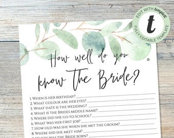 How Well Do You Know The Bride Game A Free Bridal Shower