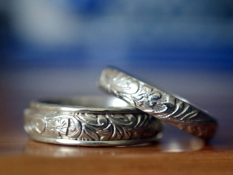 Engraved Wedding Bands His Hers Elizabethan Style Sterling Etsy