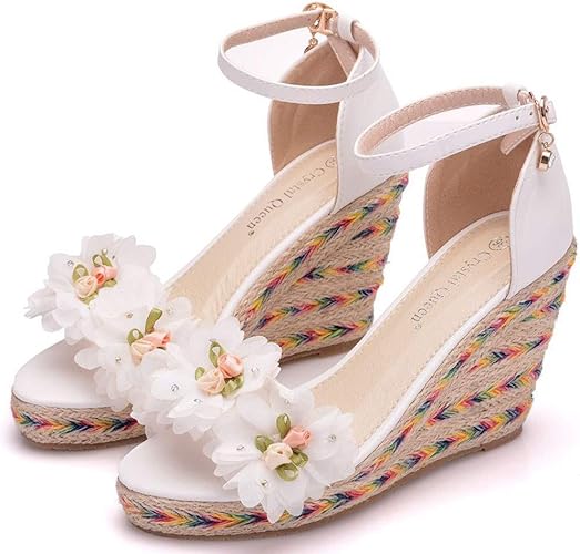 Moretime Women S Flower Fish Mouth Wedges Sandals Roman White